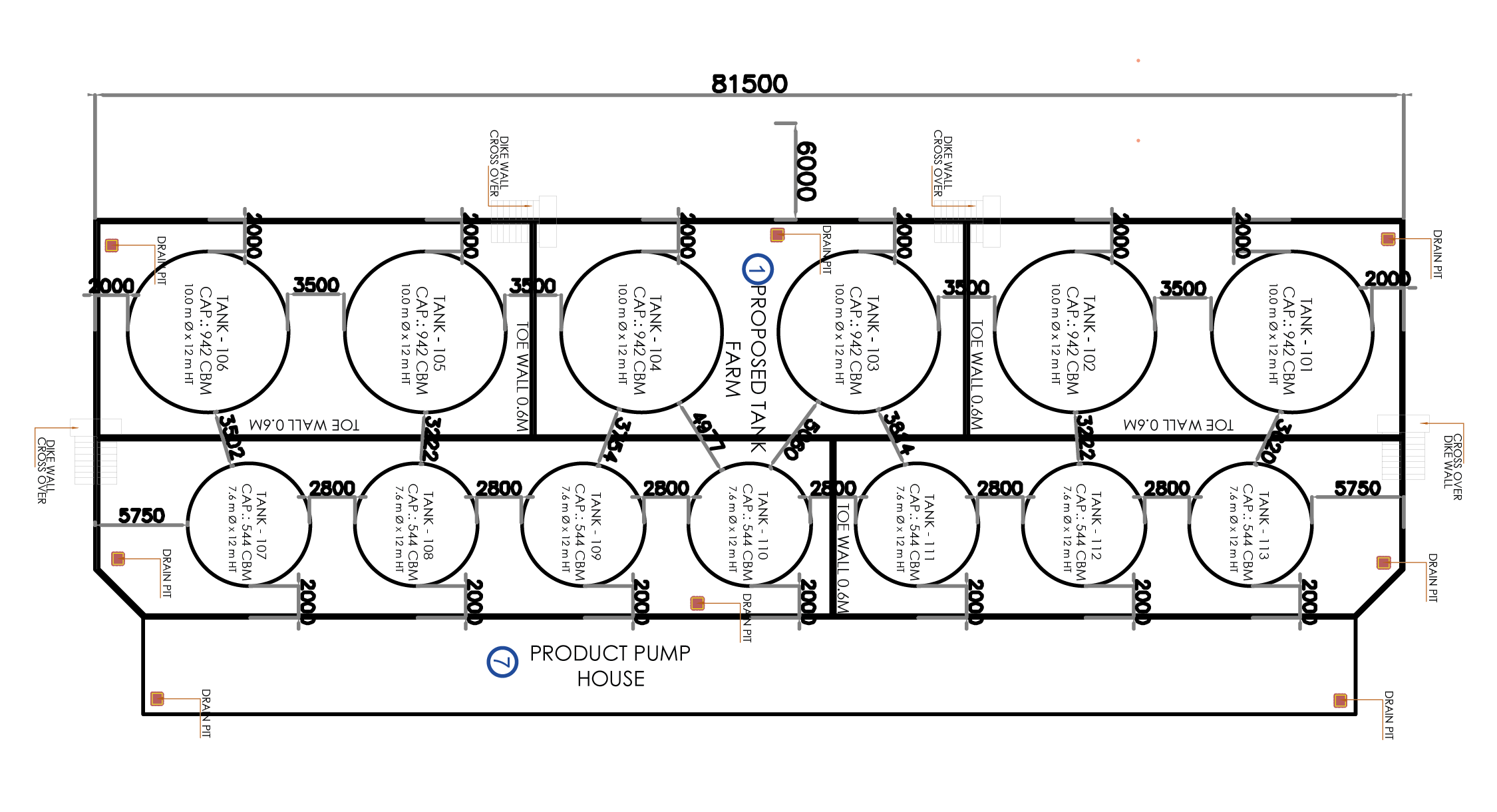 The existing Tank Farm is a 17 tanks with a total capacity of 43,616 cubic meters allocated on the